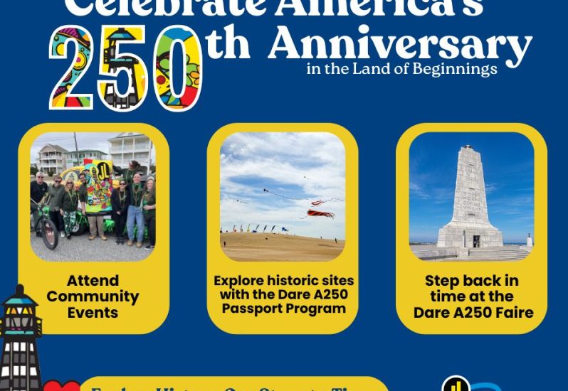 Join us as Dare County celebrates 250 years of history, culture, and community with Dare A250! From engaging local events and a county-wide Passport Program, to a one-of-a-kind Colonial Faire, there are so many ways to experience the story of the Outer Banks.