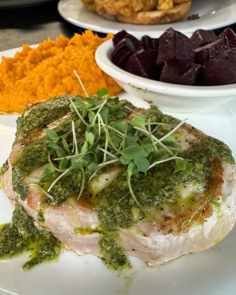 Can’t beat a Pork Chop with Sweet Onion Gravy & a NC Jumbo Lump Crabcake paired with Beets & Whipped Sweets #localseafood