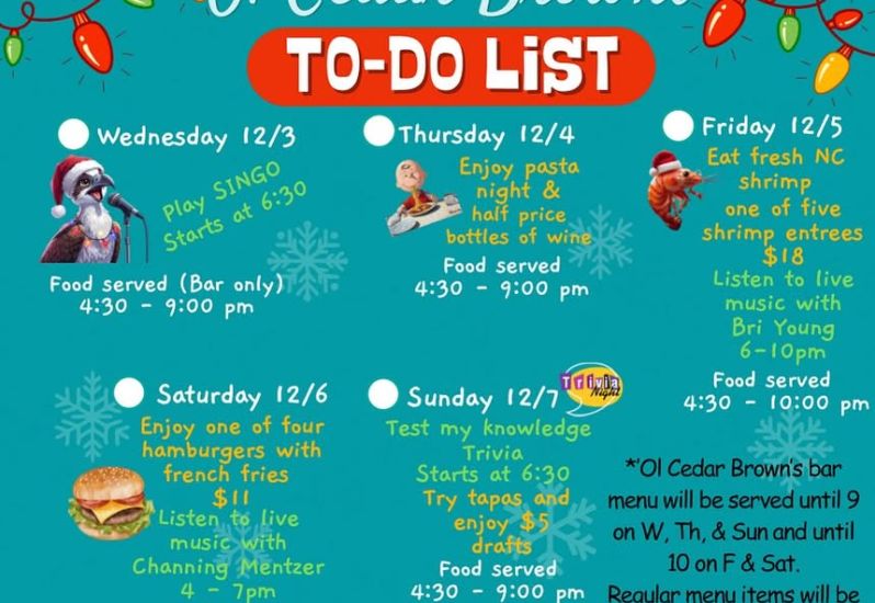 ‘Ol Cedar Brown’s is wide open until 10pm tonight!! Get in here and grab your passport🎄 @the12barsofchristmas