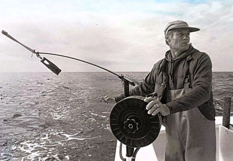 Throwback Thursday – Commercial fisherman, Fred Fox, lets out some line behind his vessel, Apparition, out of Hatteras in 1985. (Courtesy Lynn Fox / Photo by Drew Wilson)