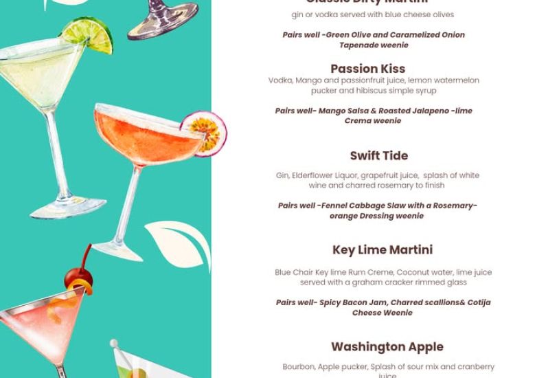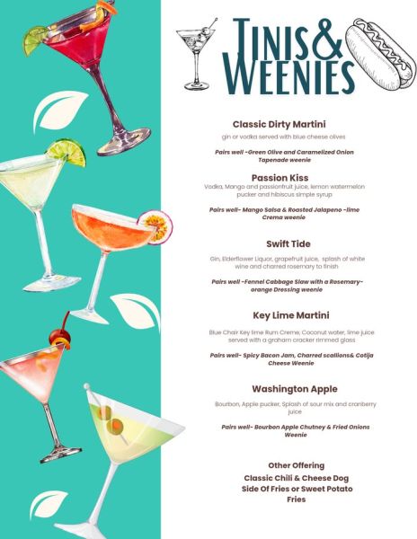 In addition to this event, we have our regular menu running in the large dining room. Regular dinner serve, please make a reservation, for tinis and weenies, first come first serve.