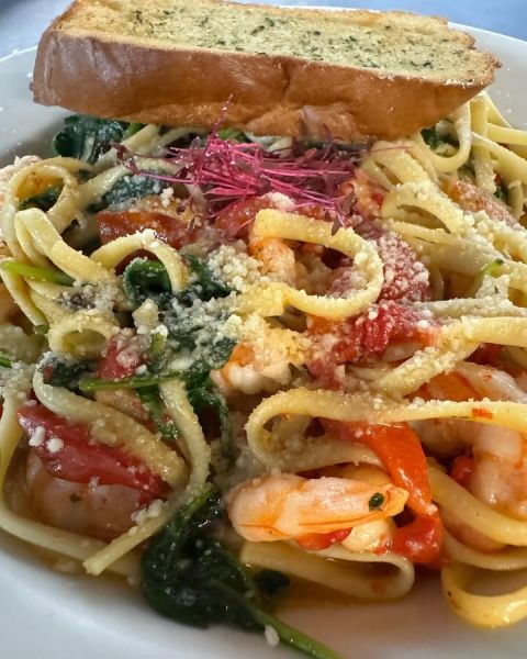 Shrimp Pasta tonight as one of our yummy seafood specials! Swipe for all specials! Join us for dinner 4:30pm-9:00pm #localseafood #waterfrontdining