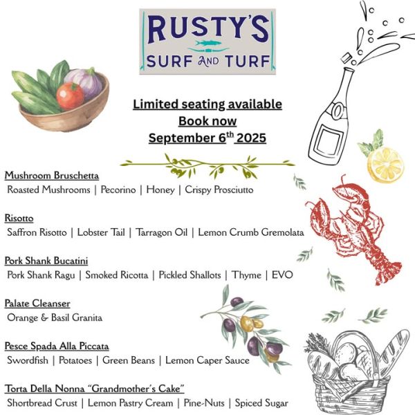 Join Us for an Italian dining experience at Rusty Surf and Turf!