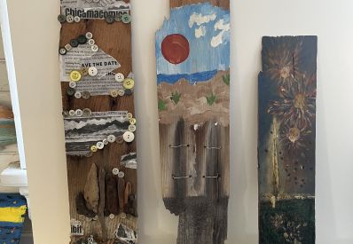 Big Sale! Remaining cedar shakes salvaged from the 1911 Chicamacomico Life-Saving Cookhouse, hand-painted by local artists to commemorate the 150th anniversary of the 1874 Station, are now available. Prices have been reduced. Get them before they’re gone!