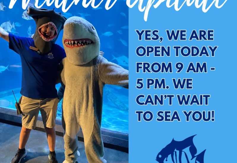 Good morning! Today is Thursday, August 21 and the NC Aquarium on Roanoke Island is OPEN from 9am - 5pm. Outdoor areas may be closed separately depending on weather conditions.