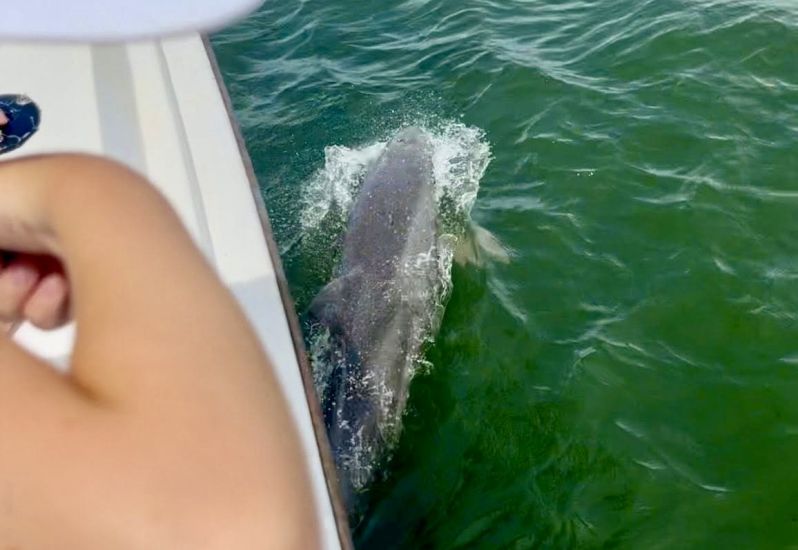Hurricane Erin may be off the coast, but you’d never guess it from yesterday’s ride—dolphins leading the way and Bodie Island Lighthouse standing tall in the distance.