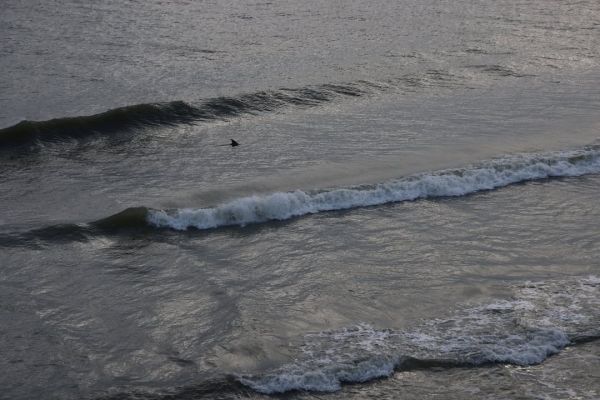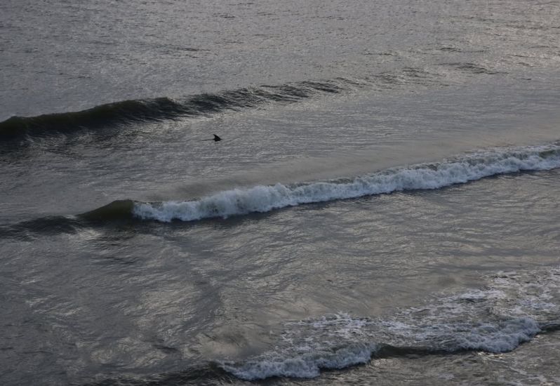 Plenty of #DOLPHIN swimming close to #pier this morning. Water temp 55 degrees, air 46 degrees.