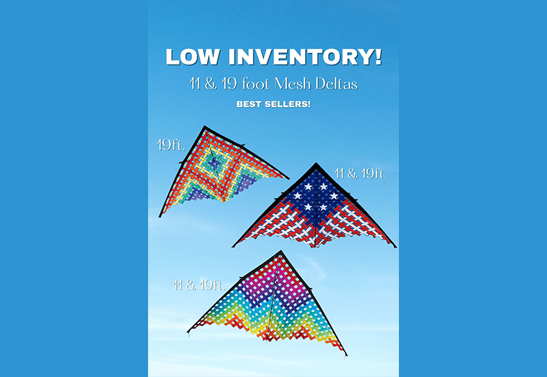 Low Inventory Alert! We only have a few 11 foot and 19 foot Mesh Deltas left in stock! These are some of our bestsellers online!🪁