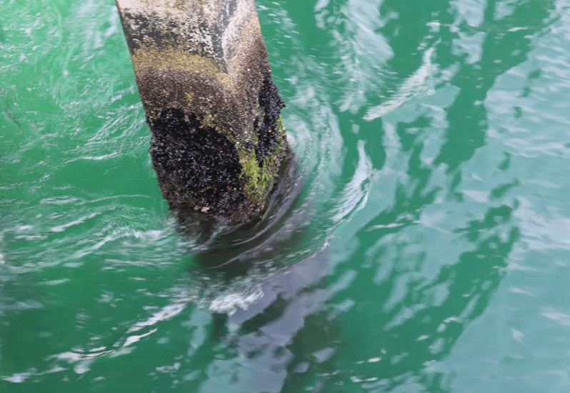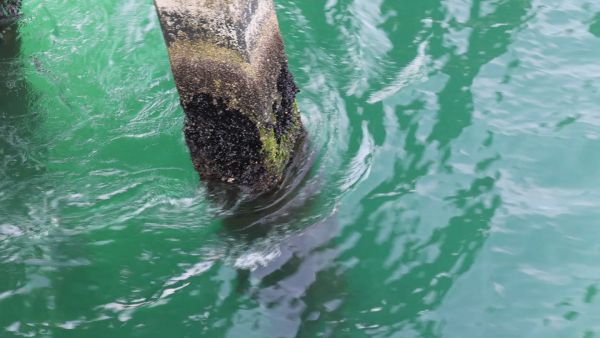 Clear Ocean Water pushes through pilings recently.