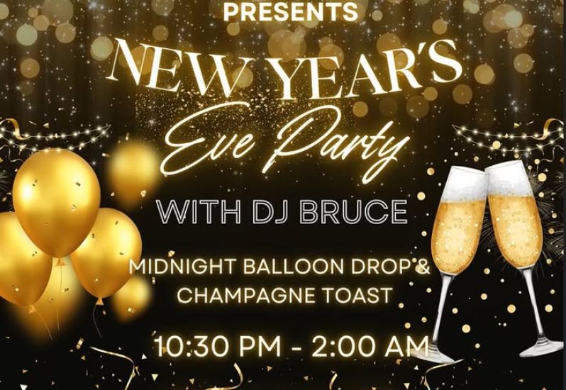 The night will be packed with fun, with DJ Bruce spinning tunes all night and a festive balloon drop and a complimentary champagne toast at midnight, all for just a $10 cover charge! Get ready for great music, good vibes, and unforgettable memories as we countdown to the New Year together. Don’t miss out, it’s the perfect way to kick off 2026!