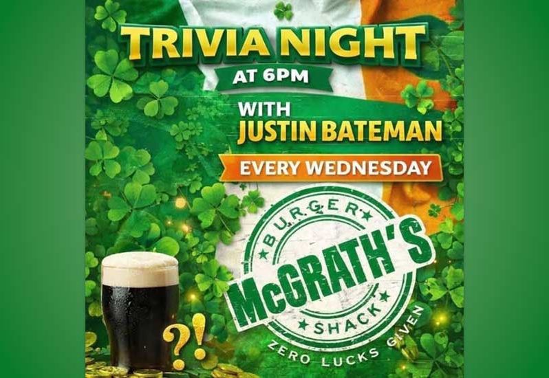 Join us at McGrath’s Burger Shack tonight at 6PM for Trivia Night!
