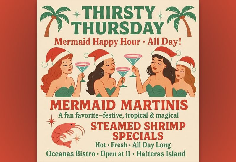 Can you believe one week from today is Christmas?!?! 🎅 Need a little break from the holiday shopping and wrapping? Grab your gals and pals and stop in the bistro for a cold one … or two! Steamed shrimp and mermaid martinis on special all day! Open at 11!
