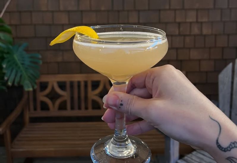 made with Bombay Sapphire gin, lemon juice, orgeat, and Angostura bitters