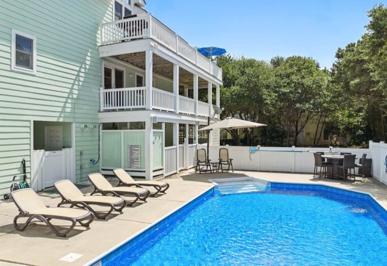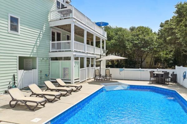 Selahbration is a luxurious Outer Banks home featuring Mediterranean-inspired decor, upscale finishes, multiple entertaining areas, and a fully equipped kitchen with dual ovens, stovetops, and dishwashers. With a rec room, pool, foosball table, and a prime central location near the beach, Avalon Pier, shopping, and bike paths, it’s ideal for a spacious, fun-filled family vacation!✨