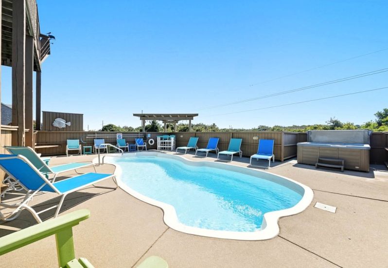 Beach Blessings Too is a 6 bedroom, pet-friendly home in Corolla that offers a private pool, hot tub, volleyball court, pool table, and rooftop deck. It's conveniently located nearby the grocery store, Timbuck II Shopping Village, and the Coral Walkway beach... See More