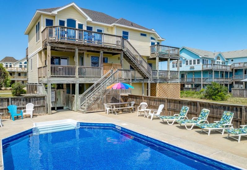 OBX Diamond is a 7 bedroom, sound front, dog-friendly home in Kitty Hawk that offers a private pool, foosball and pool table, hot tub, pool towels and Blue standard bedding, and more. Guests noted that this home... See More