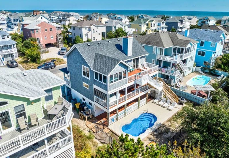 Sandfiddler is an 8 bedroom, dog-friendly, oceanfront home in South Nags Head that offers a private pool... See More