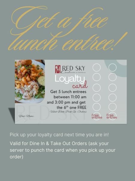 Red Sky is OPEN and ready to take the stress off your plate! Whether you need a quiet lunch, a festive dinner with the fam, or can’t bear to cook one more thing… we’ve got you.